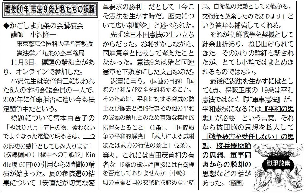 注1 「く~学流会」「共~講演会」「九~講演会」「鹿大」は「くろつち会学習会」「共助会講演会」「九条の会講演会」「鹿児島大学」の略記